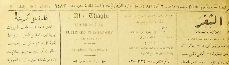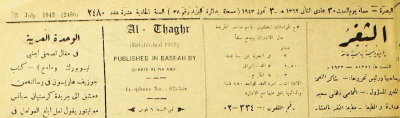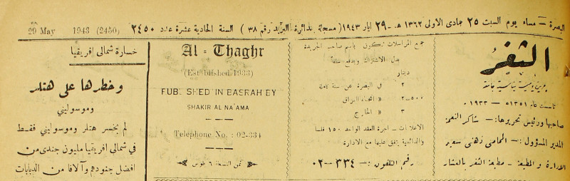 جريدة يومية سياسية عامة = AL-Thaghr : A Daily Newspaper