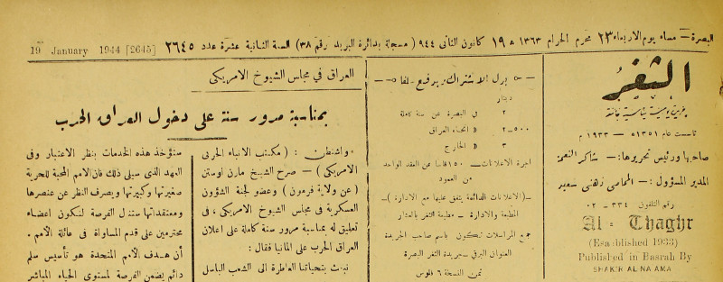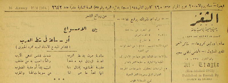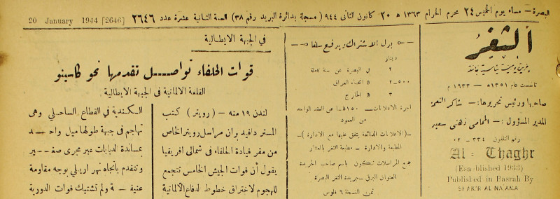 جريدة يومية سياسية عامة = AL-Thaghr : A Daily Newspaper