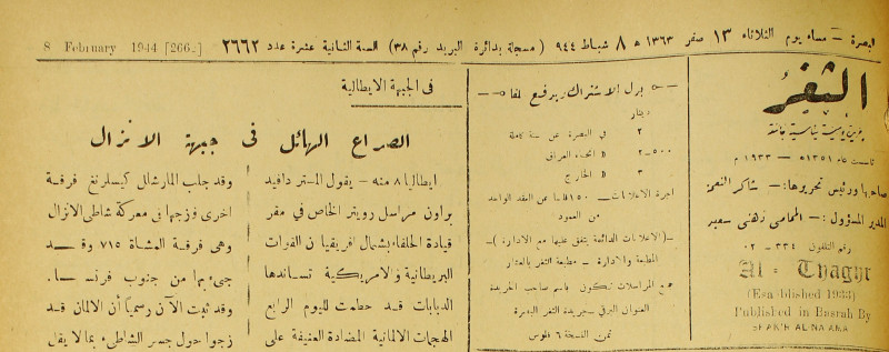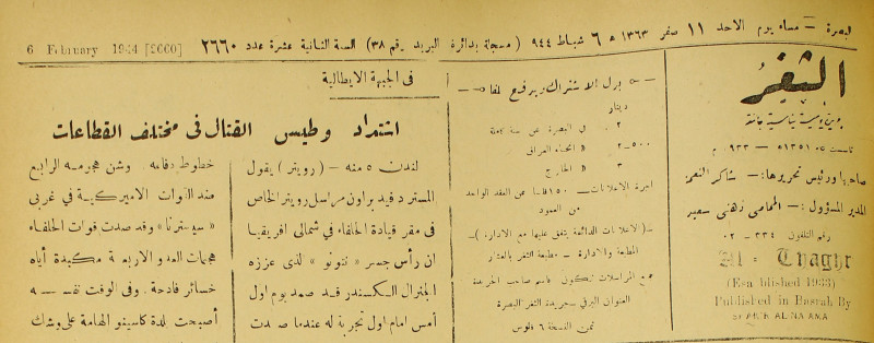 جريدة يومية سياسية عامة = AL-Thaghr : A Daily Newspaper