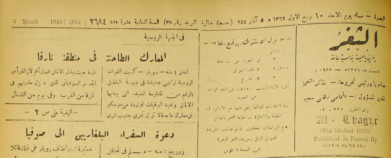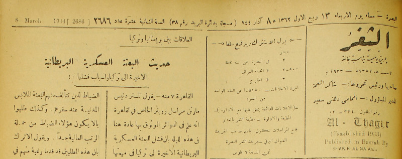 جريدة يومية سياسية عامة = AL-Thaghr : A Daily Newspaper