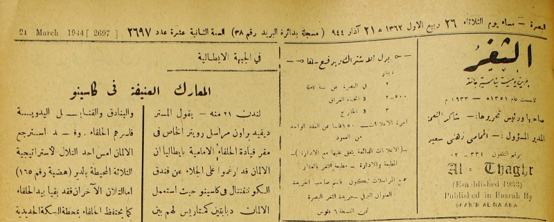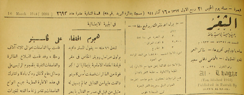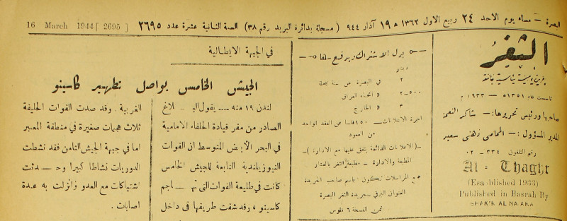 جريدة يومية سياسية عامة = AL-Thaghr : A Daily Newspaper