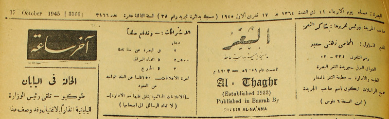 جريدة يومية سياسية عامة = AL-Thaghr : A Daily Newspaper