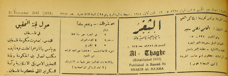 جريدة يومية سياسية عامة = AL-Thaghr : A Daily Newspaper