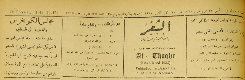 صاحبها ورئيس تحريرها : شاكر النعمة.