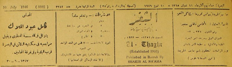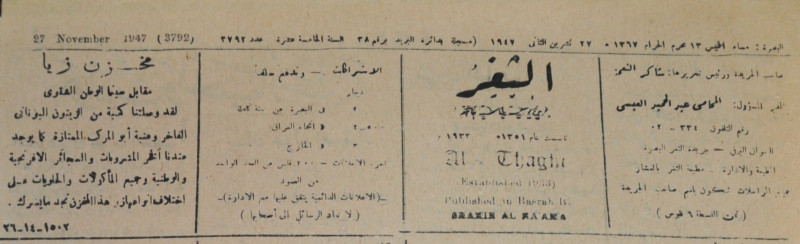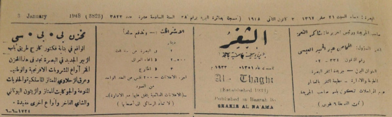 جريدة يومية سياسية عامة = AL-Thaghr : A Daily Newspaper