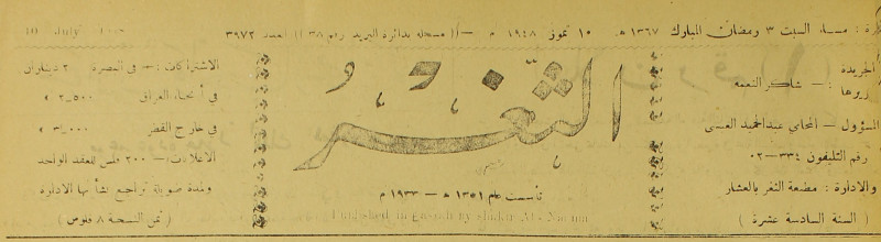 جريدة يومية سياسية عامة = AL-Thaghr : A Daily Newspaper