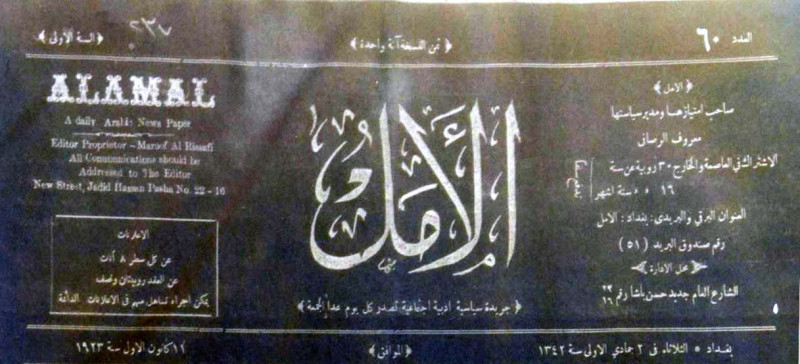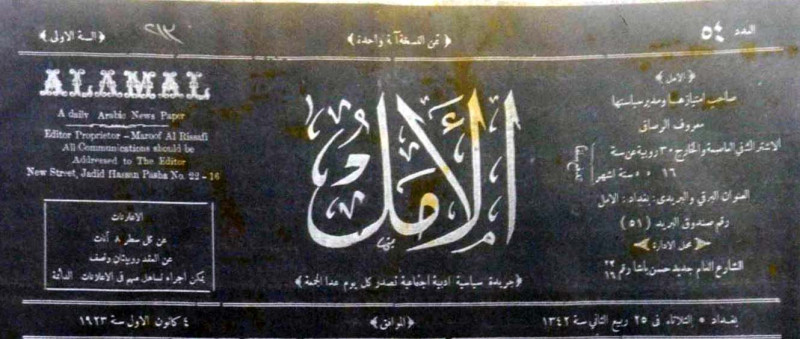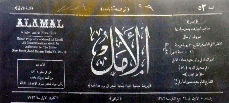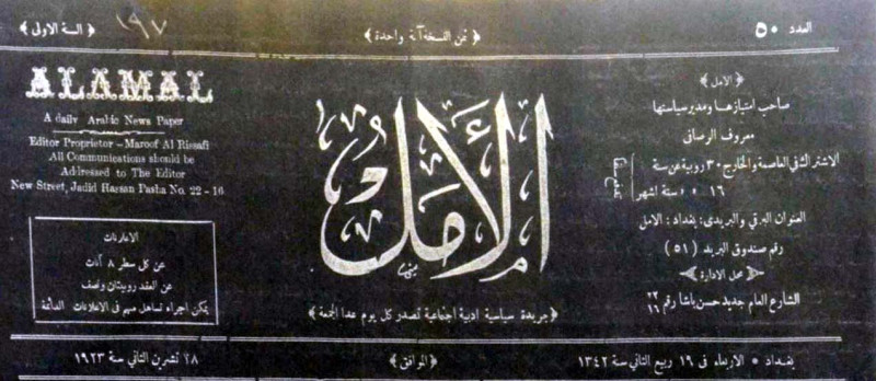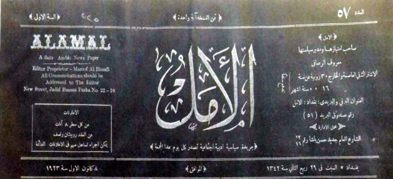 صاحب الامتياز ومدير سياستها : معروف الرصافي.