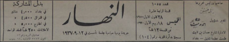 العدد 16، السنة 1 (26 تشرين الثاني 1937)