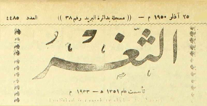 جريدة يومية سياسية عامة = AL-Thaghr : A Daily Newspaper