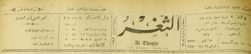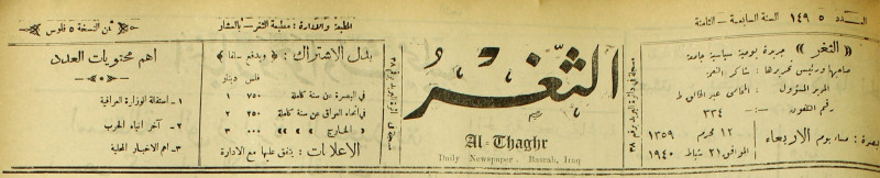 جريدة يومية سياسية عامة = AL-Thaghr : A Daily Newspaper
