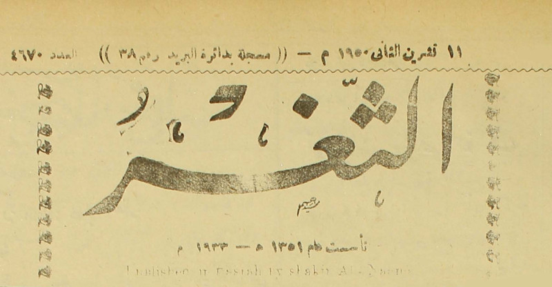 جريدة يومية سياسية عامة = AL-Thaghr : A Daily Newspaper
