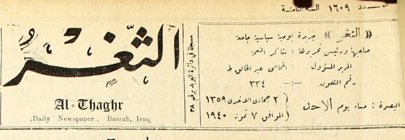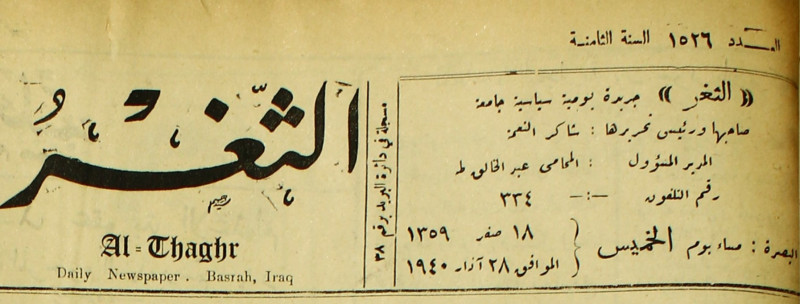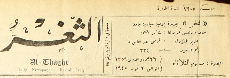 جريدة يومية سياسية عامة = AL-Thaghr : A Daily Newspaper