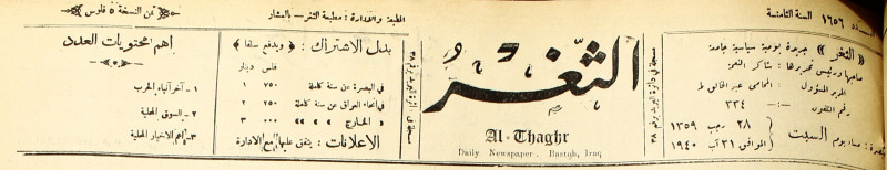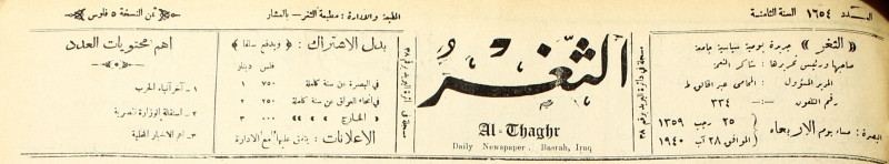 جريدة يومية سياسية عامة = AL-Thaghr : A Daily Newspaper
