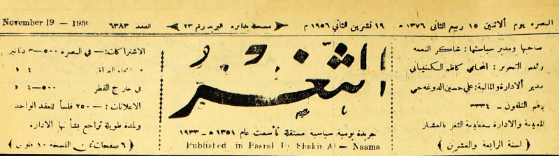 جريدة يومية سياسية عامة = AL-Thaghr : A Daily Newspaper