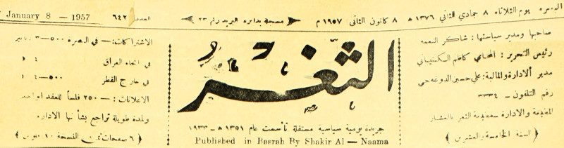 صاحبها ورئيس تحريرها : شاكر النعمة.