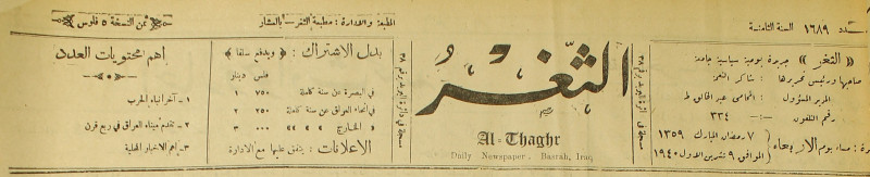 جريدة يومية سياسية عامة = AL-Thaghr : A Daily Newspaper