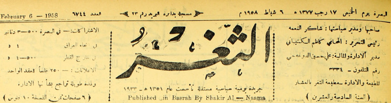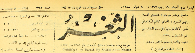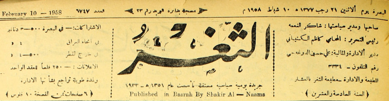 صاحبها ورئيس تحريرها : شاكر النعمة.