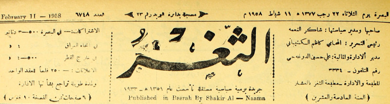 جريدة يومية سياسية عامة = AL-Thaghr : A Daily Newspaper