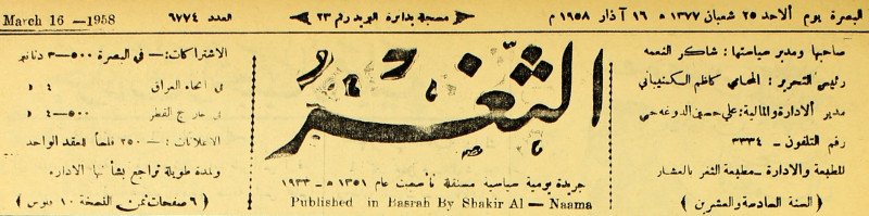 صاحبها ورئيس تحريرها : شاكر النعمة.