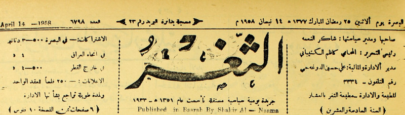 صاحبها ورئيس تحريرها : شاكر النعمة.