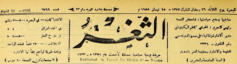 جريدة يومية سياسية عامة = AL-Thaghr : A Daily Newspaper