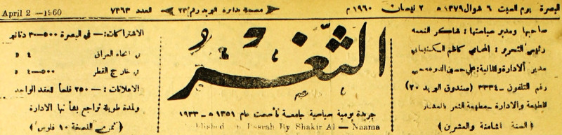 جريدة يومية سياسية عامة = AL-Thaghr : A Daily Newspaper