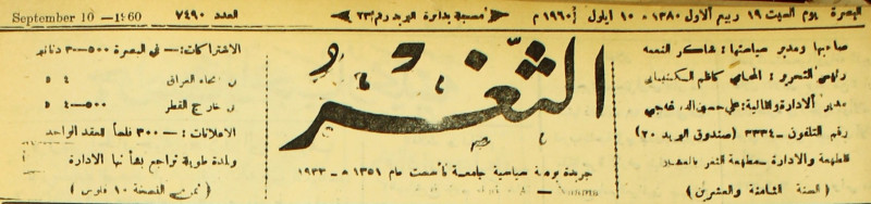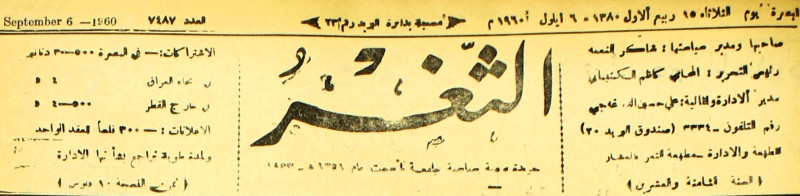 جريدة يومية سياسية عامة = AL-Thaghr : A Daily Newspaper