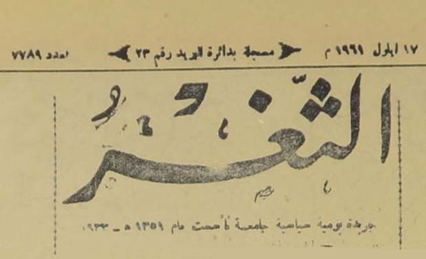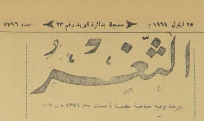 جريدة يومية سياسية عامة = AL-Thaghr : A Daily Newspaper