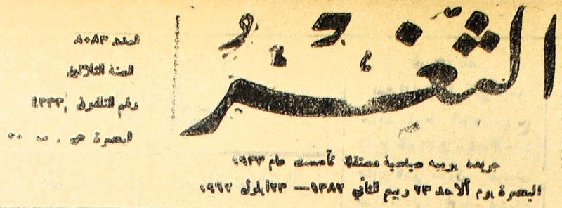 جريدة يومية سياسية عامة = AL-Thaghr : A Daily Newspaper