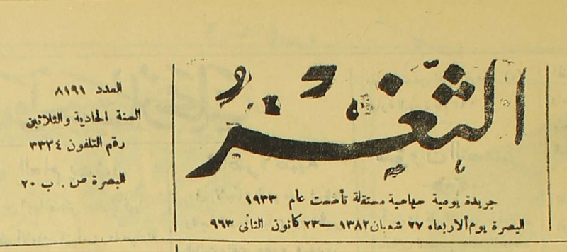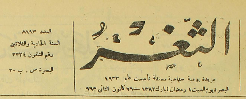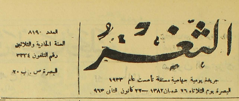 جريدة يومية سياسية عامة = AL-Thaghr : A Daily Newspaper