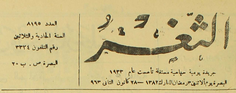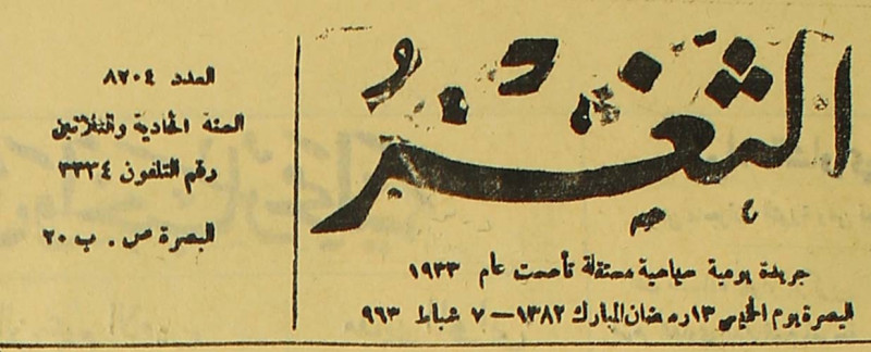 جريدة يومية سياسية عامة = AL-Thaghr : A Daily Newspaper