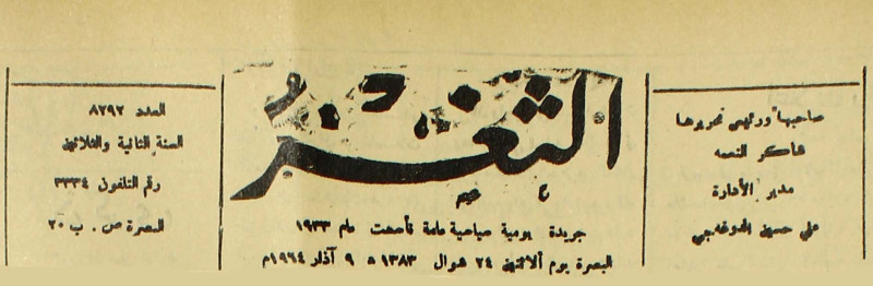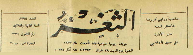 جريدة يومية سياسية عامة = AL-Thaghr : A Daily Newspaper