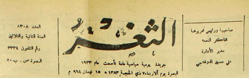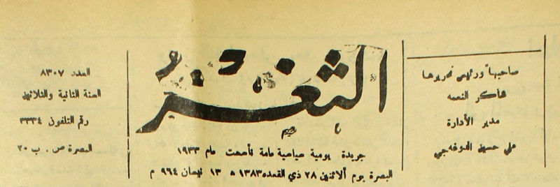 جريدة يومية سياسية عامة = AL-Thaghr : A Daily Newspaper