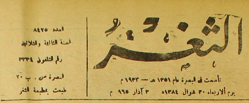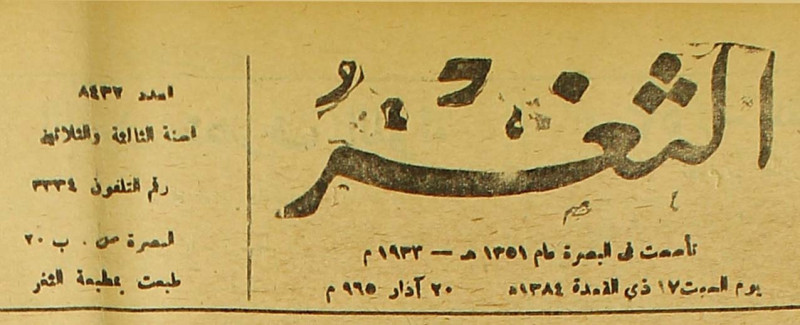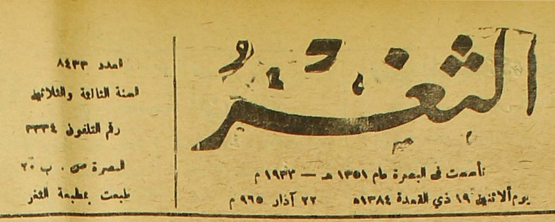 جريدة يومية سياسية عامة = AL-Thaghr : A Daily Newspaper