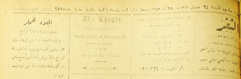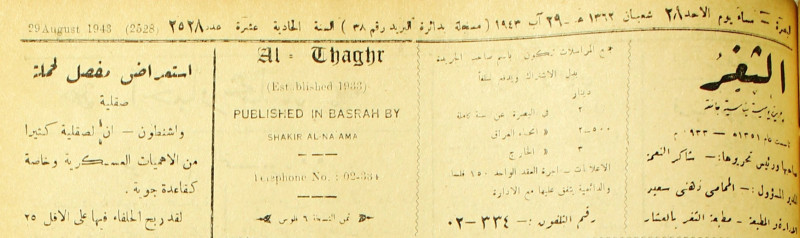 جريدة يومية سياسية عامة = AL-Thaghr : A Daily Newspaper