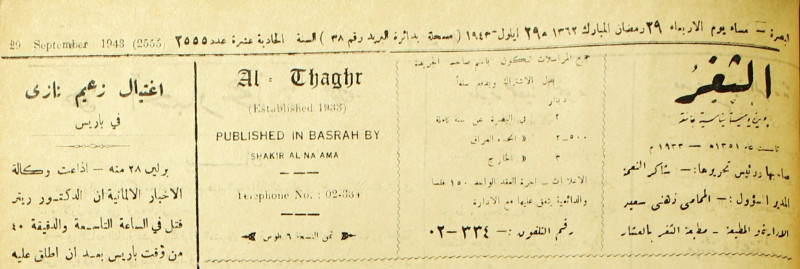 جريدة يومية سياسية عامة = AL-Thaghr : A Daily Newspaper
