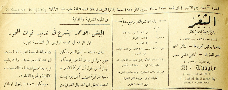 جريدة يومية سياسية عامة = AL-Thaghr : A Daily Newspaper