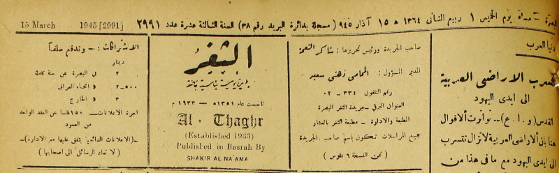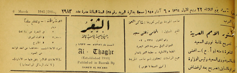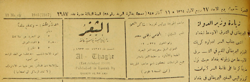 جريدة يومية سياسية عامة = AL-Thaghr : A Daily Newspaper