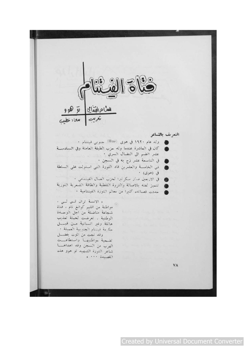 للشاعر الفيتنامي تو هوو ؛ تعريب سعاد خطيب.