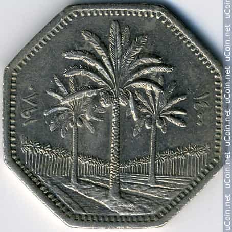 الوجه الامامي منقوش 1400 / 1980 / مجموعة نخيل والوجه الخلفي 250 فلسا / الجمهورية العراقية.