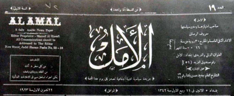 صاحب الامتياز ومدير سياستها : معروف الرصافي.