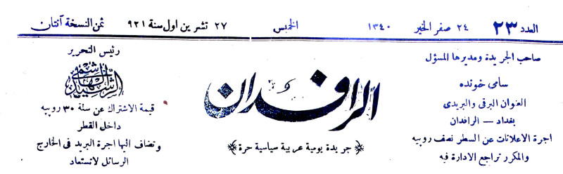 الرافدان (جريدة : بغداد، العراق : 1921)