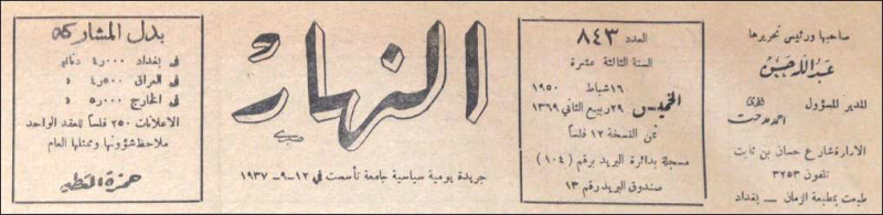 النهار (جريدة : بغداد، العراق : 1937)