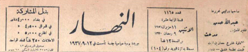 النهار (جريدة : بغداد، العراق : 1937)