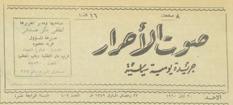 جريدة يومية سياسية جامعة : لسان حال حزب الاحرار.