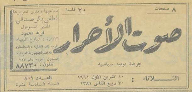 صاحبها ومدير تحريرها : لطفي بكر صدقي.
