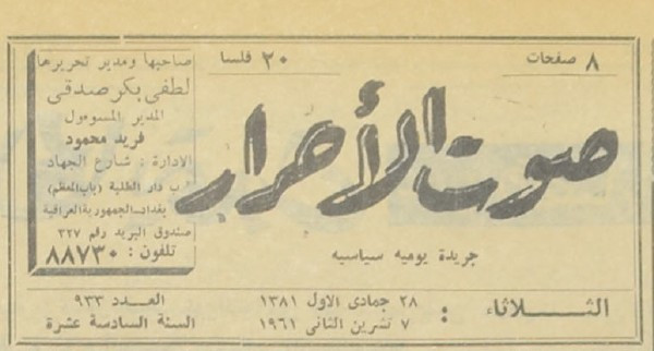 صاحبها ومدير تحريرها : لطفي بكر صدقي.