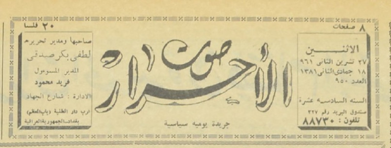 صاحبها ومدير تحريرها : لطفي بكر صدقي.