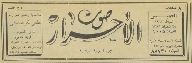 جريدة يومية سياسية جامعة : لسان حال حزب الاحرار.