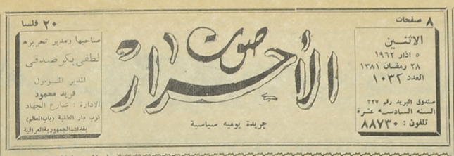 صاحبها ومدير تحريرها : لطفي بكر صدقي.